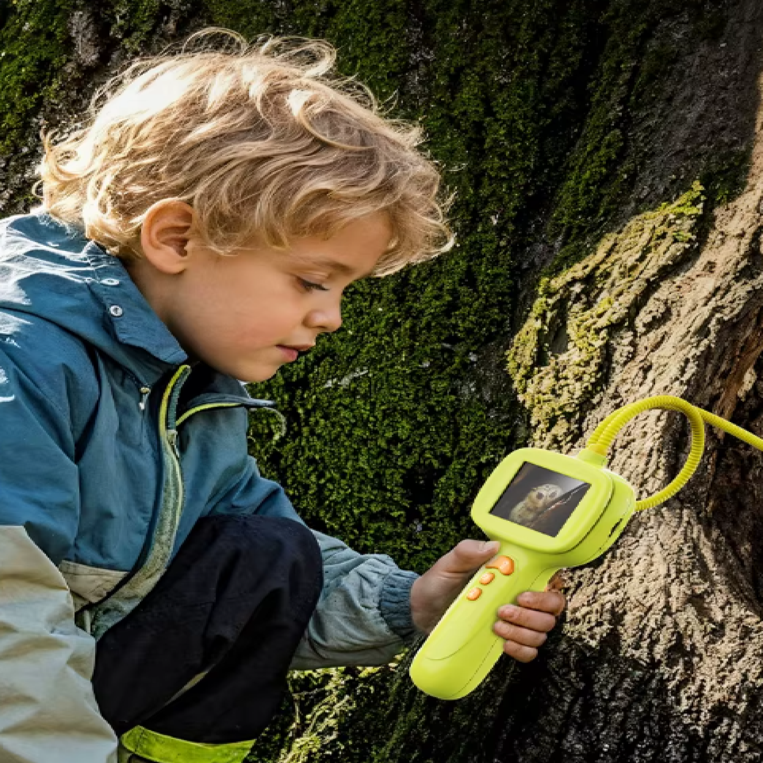 Dzieci uwielbiają zaglądać w trudno dostępne miejsca – endoskop pozwala im odkrywać świat w nowy sposób: wewnątrz pudełek, zabawek, zakamarków pokoju, a nawet przyrody na podwórku.