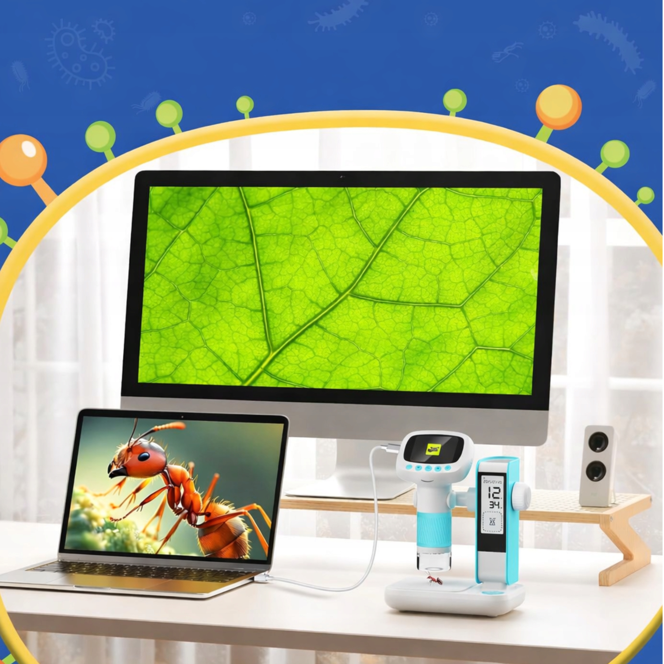 Mikroskop może być używany samodzielnie lub po podłączeniu do komputera, co pozwala wyświetlać obraz na dużym ekranie – idealne do nauki, prezentacji i wspólnego oglądania.