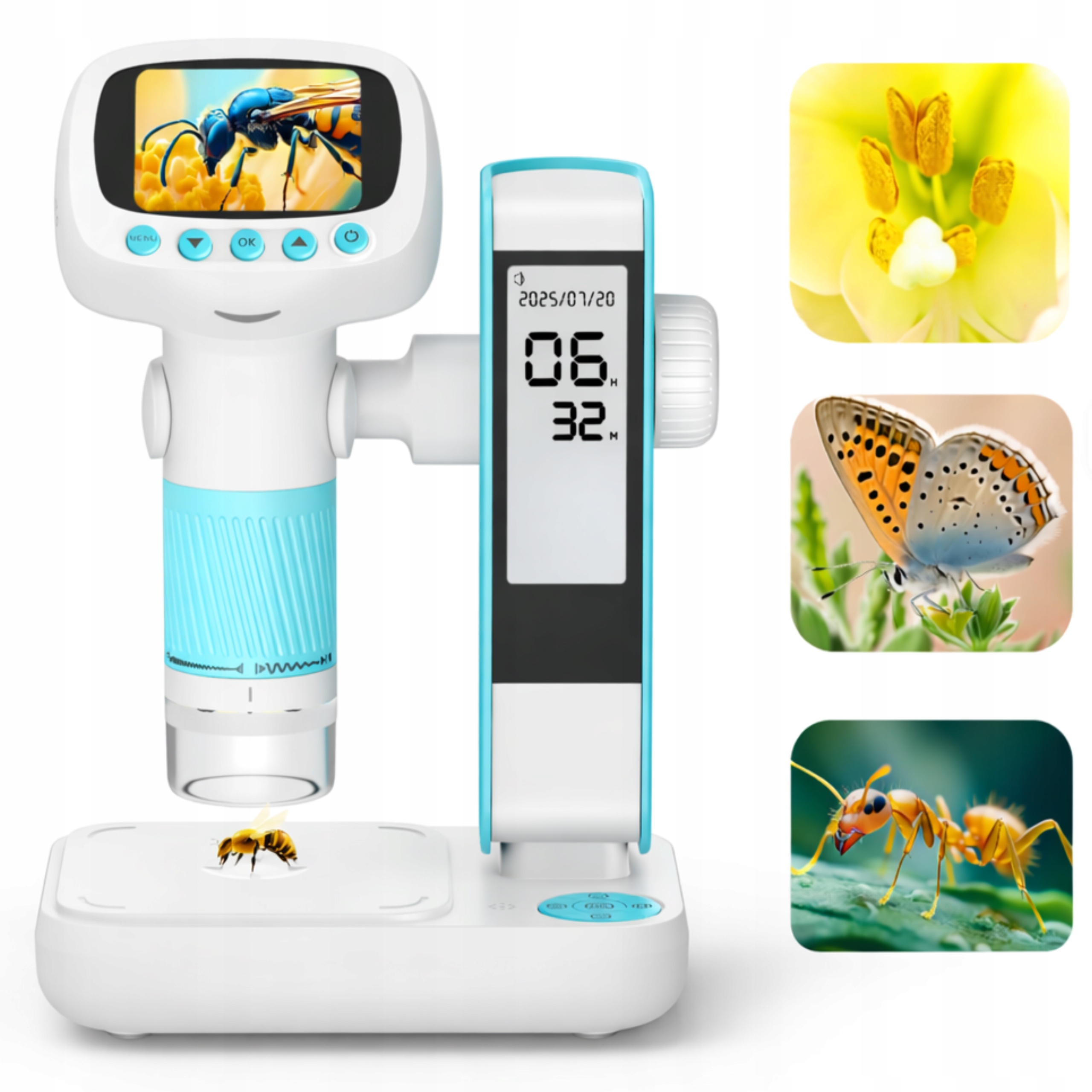 ? CYFROWY MIKROSKOP LCD HD + STATYW Z ZEGARKIEM I TIMEREM | USB |